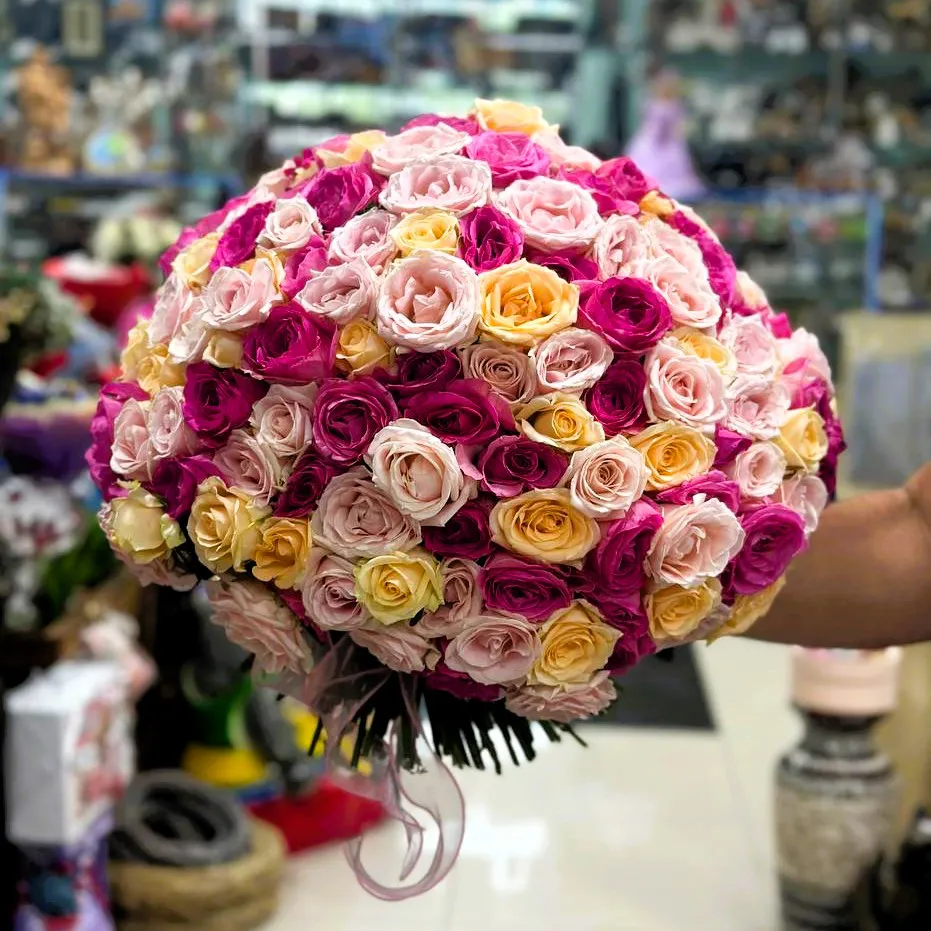 Выбирая букет из 101 разноцветной розы, вы дарите не просто цветы, а целое море чувств и положительных эмоций, которые наполнят сердце теплом и радостью. Создайте незабываемые моменты и подчеркните важность тех, кого вы любите, с помощью этого великолепного букета!