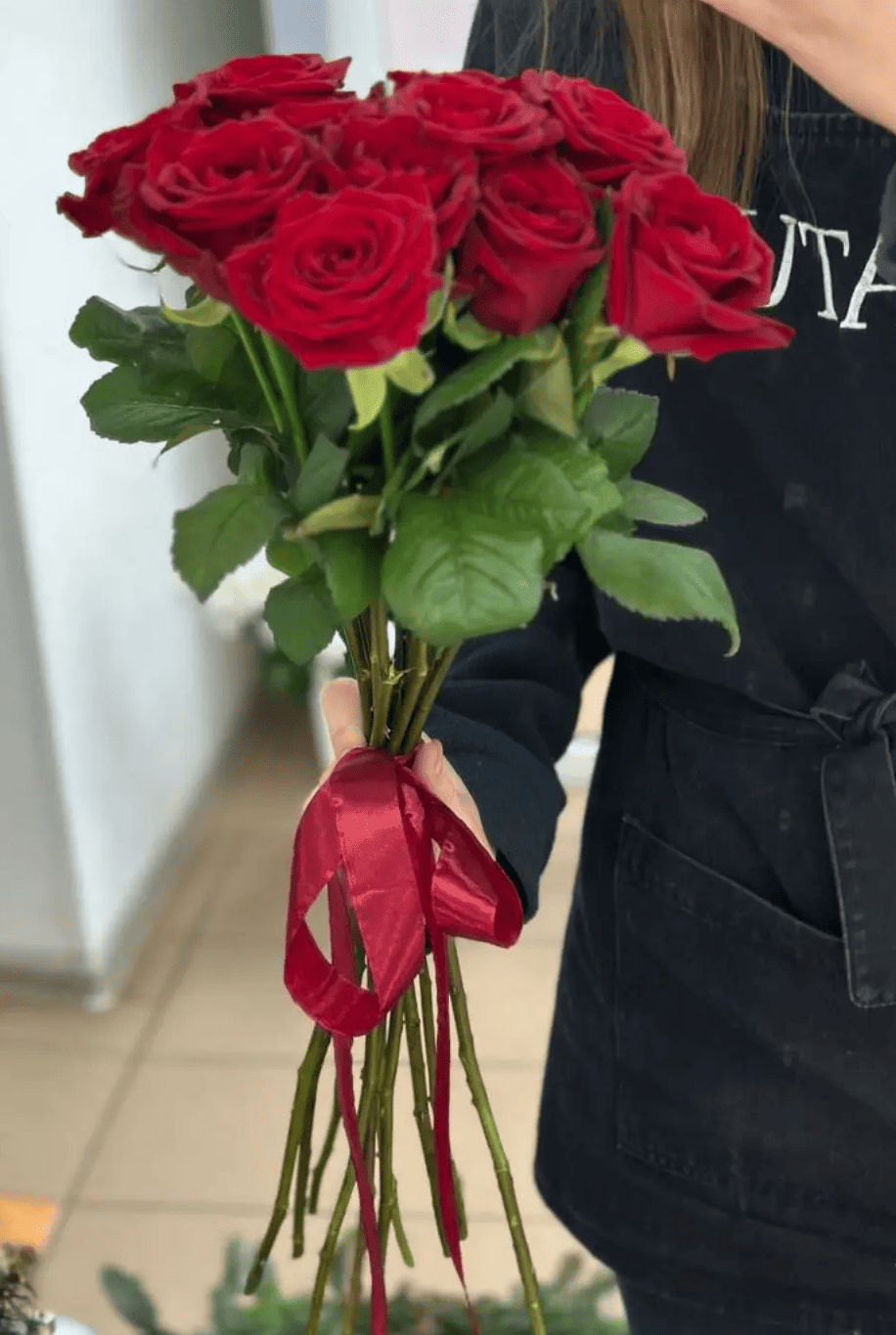 Аккуратно собранные розы, перевязанные атласной лентой, выглядят утончённо, дорого и по-настоящему стильно. Такой букет идеально подойдёт для тех, кто ценит минимализм и изысканную простоту.