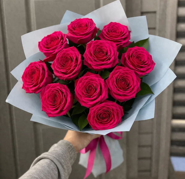 Роза - 11 шт, упаковка, лента |