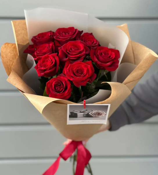 розы - 9шт, упаковка, лента |