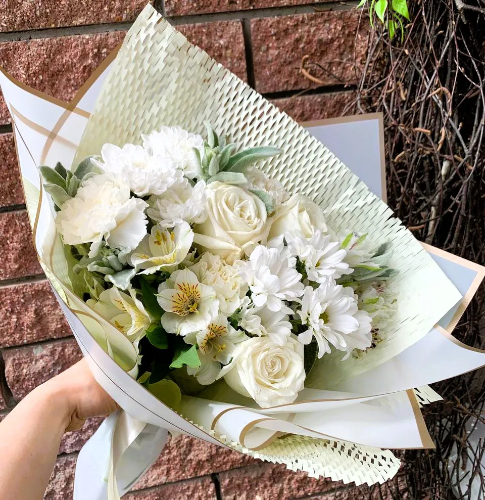 Этот гармоничный ансамбль дарит атмосферу нежности и праздника, будто вдыхает в окружающий мир свежесть утренней росы. Букет станет прекрасным подарком, символизирующим искренние чувства и заботу о близких.