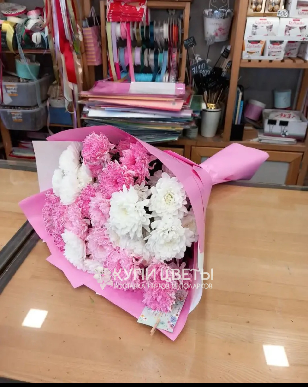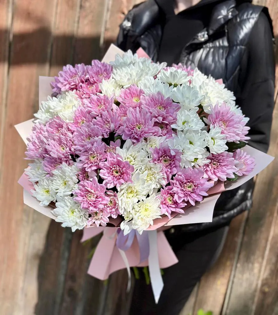 Кустовые хризантемы,упаковка,лента |