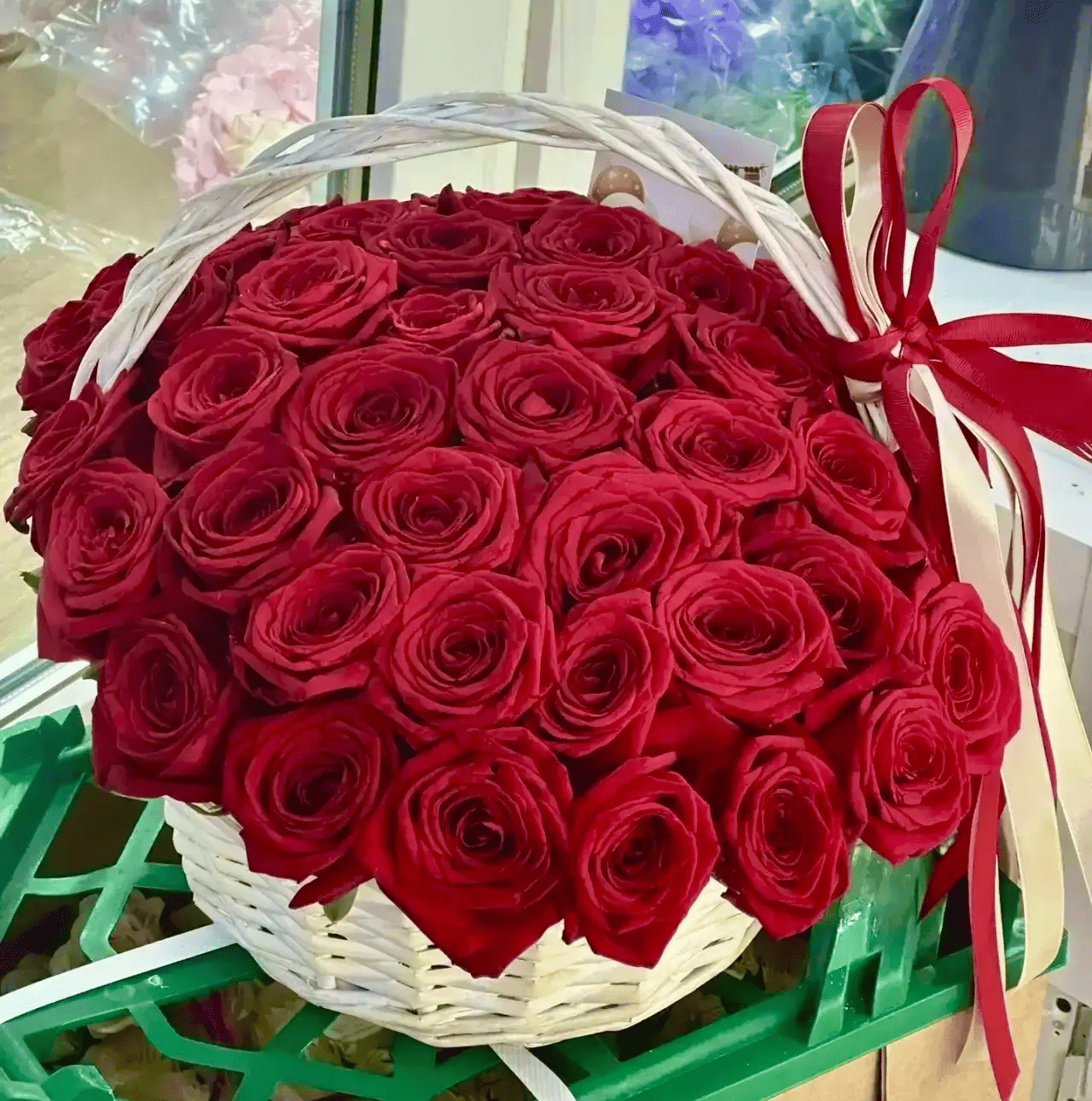Переплетенные между собой красные розы создают ощущение естества и уюта, а корзина, выполненная из натуральных материалов, добавляет элемент тепла и уюта. Такой подарок не только станет прекрасным дополнением к любому торжеству, но и способен передать самые искренние чувства. Эта корзина — символ любви, красоты и безусловной признательности, способная украсить любой день и создать атмосферу волшебства.