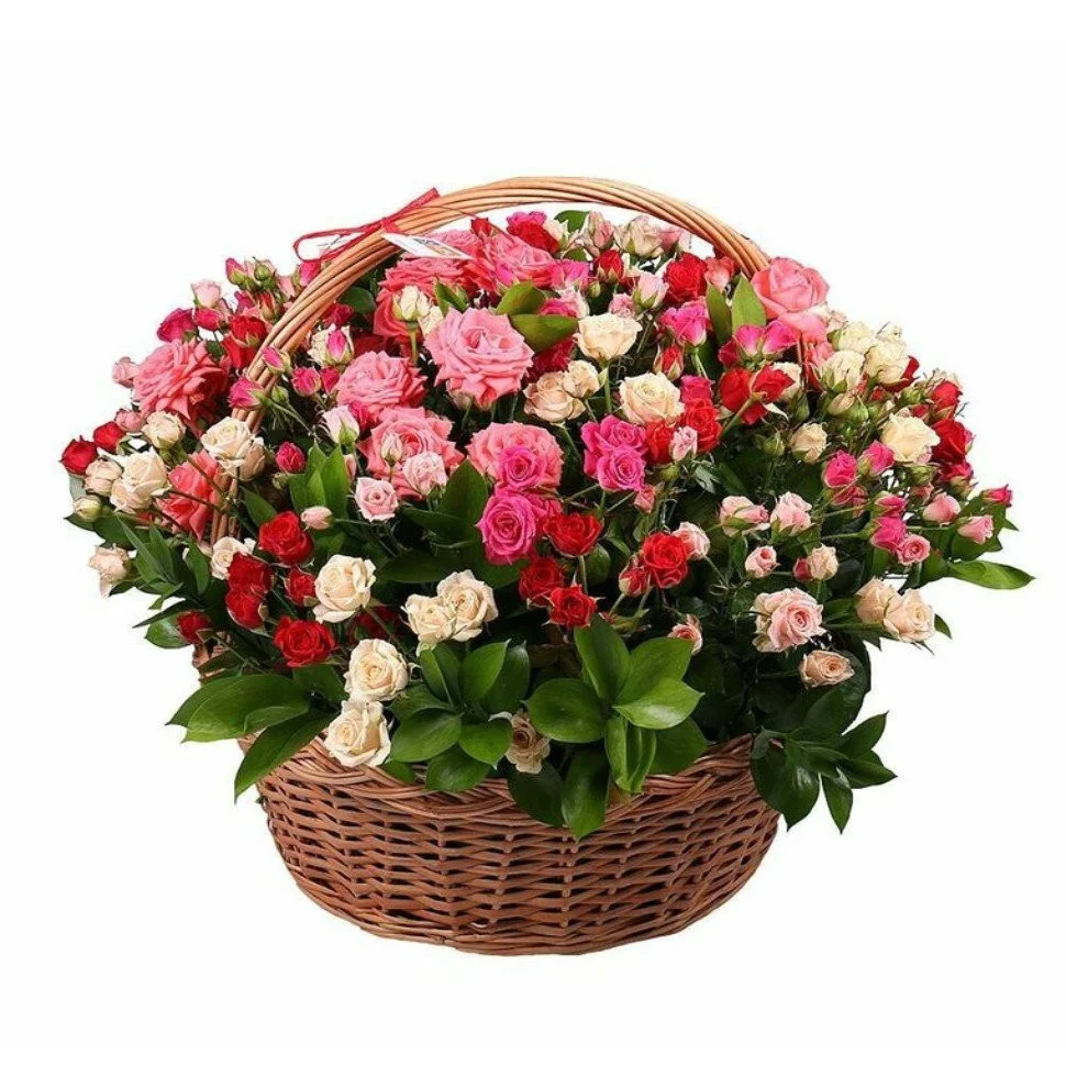 - Премиум - кустовая роза - 25 шт., зелень, оазис, корзина