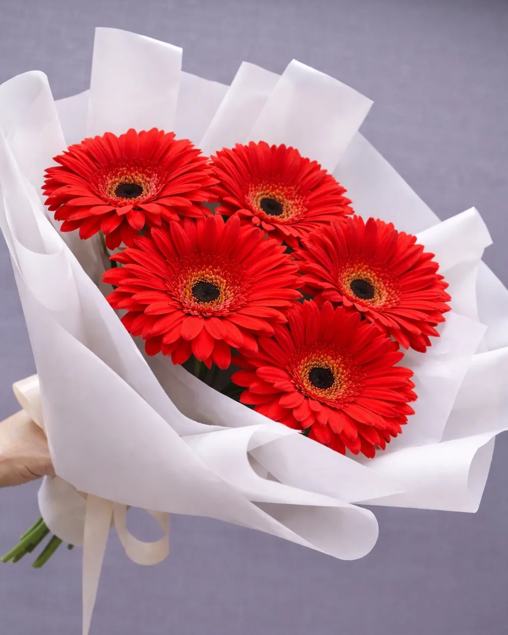 гербера - 5 шт., упаковка, лента |