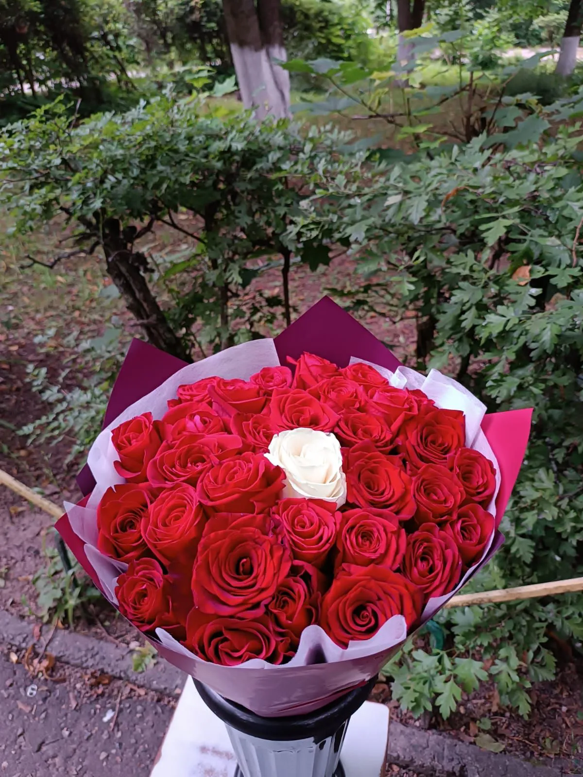 - Средний - 25 роз, упаковка, лента