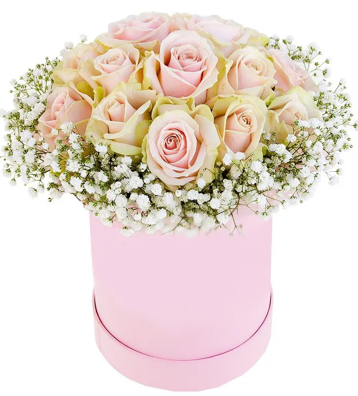 - Премиум - роза - 15 шт., гипсофила, оазис, коробка