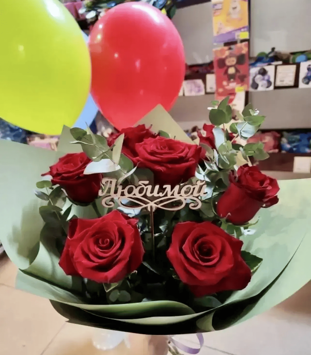 Топпер «Любимой» делает подарок максимально личным и эмоциональным, подчёркивая адресность и особый смысл букета. Аккуратная упаковка завершает композицию, придавая ей элегантный и праздничный вид.