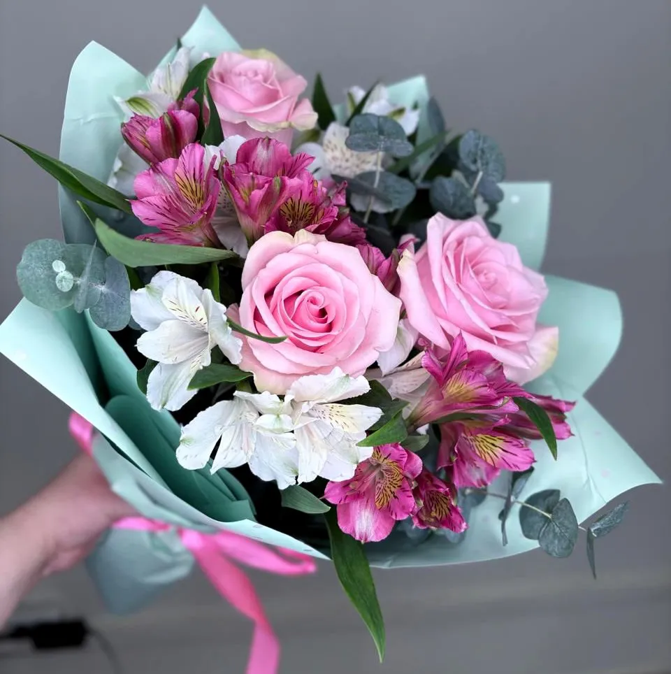 Розы и альстромерии вместе создают идеальное сочетание, даря ощущение праздника и принося счастье. Это элегантный и роскошный выбор, который подчеркнет вашу заботу и безупречный вкус.