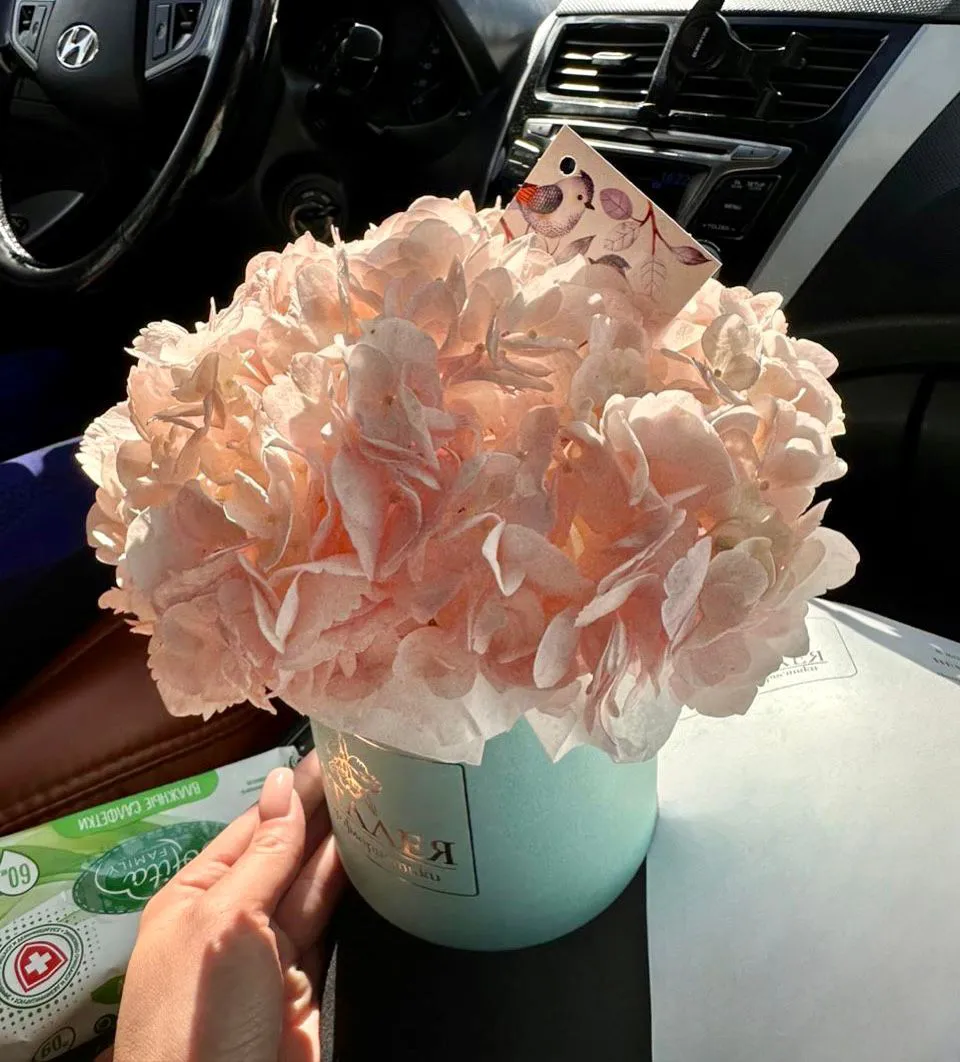 гортензии , шляпная коробка, оазис |