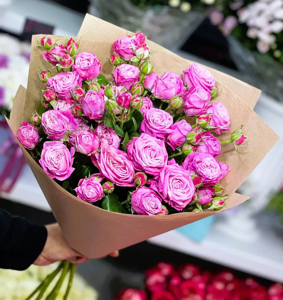 - Премиум - кустовая роза - 15 шт ,упаковка,лента