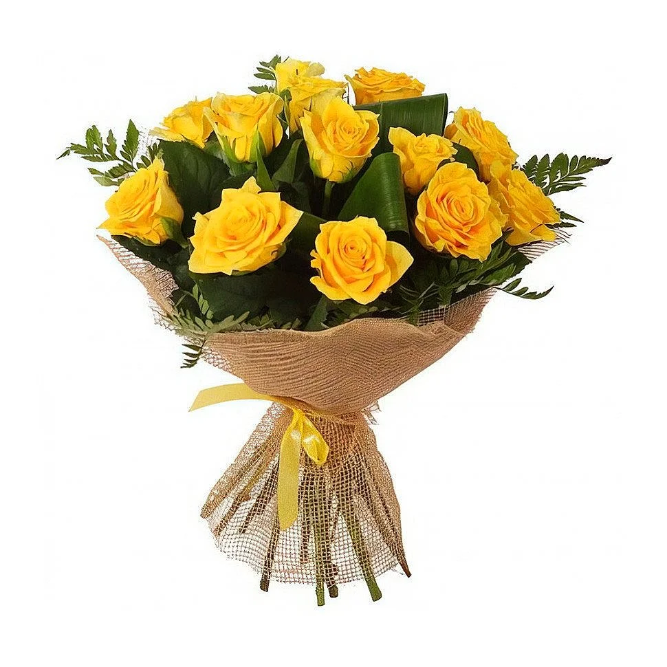 - Средний - 11 роз, зелень, оформление, упаковка, лента