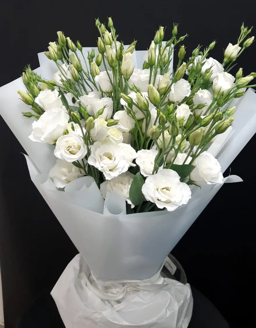 Аромат белых эустом лёгок и ненавязчив, он дополняет общую атмосферу нежности и гармонии. Такой букет не только украсит любое пространство, но и станет источником вдохновения, напоминая о том, как прекрасна жизнь в своих самых простых проявлениях.