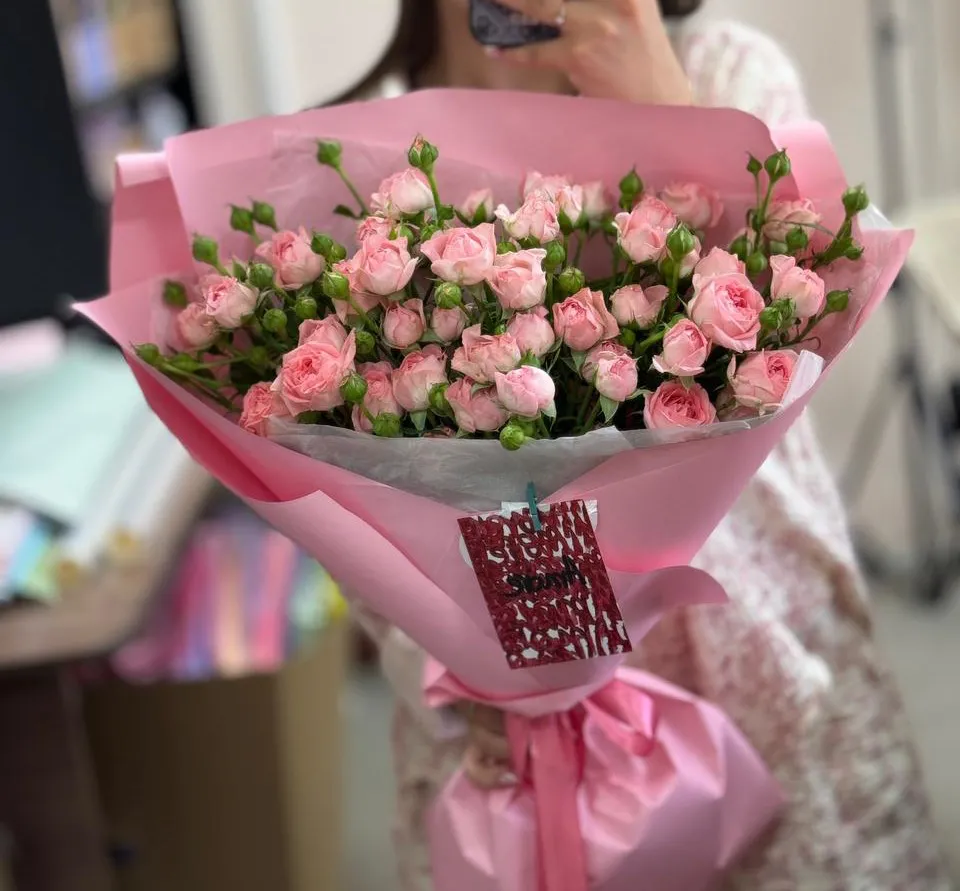 - Премиум - кустовая роза - 15 шт ,упаковка,лента