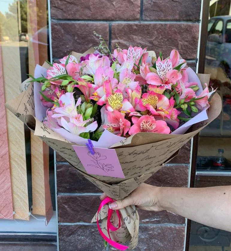 Альстромерия, упаковка, лента |