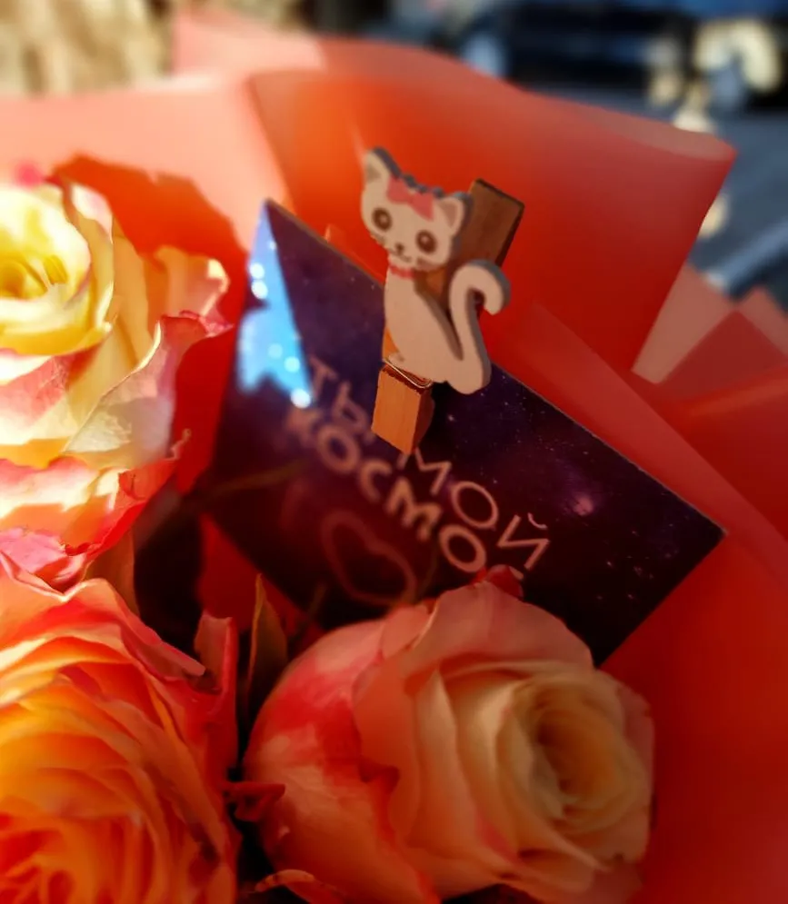 Красная упаковка добавляет букету драматичности и страсти, делая его центром внимания на любом празднике. Приятный контраст между яркими оранжевыми розами и насыщенным красным цветом создает гармоничное сочетание, которое не оставит равнодушным ни одного получателя. Этот букет станет универсальным подарком — от романтического свидания до дружеского поздравления, напоминая о силе чувств и особенных моментах жизни.